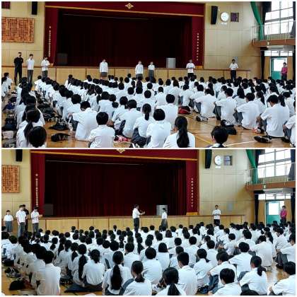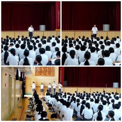 毎週月曜日が全校集会の日ですが、3連休があったため、今週は本日火曜日に全校集会を行いました。