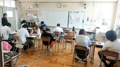 ひまわり学級では、夏休み学習会が行われています。各自夏休みの宿題を持ち寄り、勉強に励んでいます。