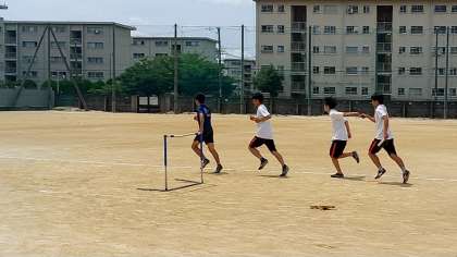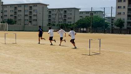 写真は陸上部の様子です。2・3年がリレーのバトンパス練習をしていました。