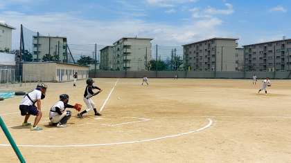 本日、午後のグラウンドでは、野球部が他校の野球部と練習試合を行っていました。