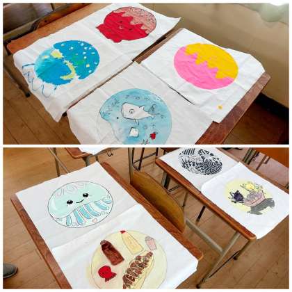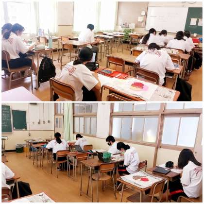 本日美術部も活動をしていました。写真の作品は、○から連想するものの絵だそうです。それぞれ、オリジナリティ溢れる作品ですね。大阪らしさも溢れています!!