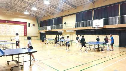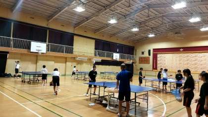 グラウンドでは女子ソフトテニス部、体育館では卓球部が活動していました。