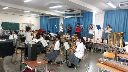吹奏楽部の様子です。今週こみちホールで行われる本番に向け練習に励んでいました。