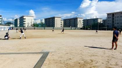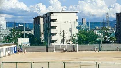 午後のグラウンドでは、野球部と陸上部が活動していました。