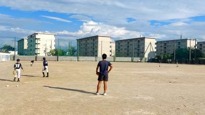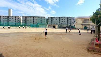 本日のグラウンドでは、陸上部と野球部、女子ソフトテニス部が活動していました。