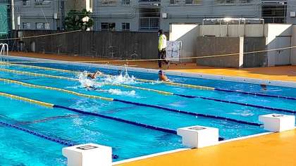 プールでは、水泳部がハード(水泳版ダッシュ)練習をしていました。