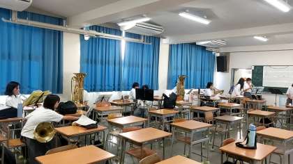 音楽室では、吹奏楽部が各パートにわかれ練習をしていました。