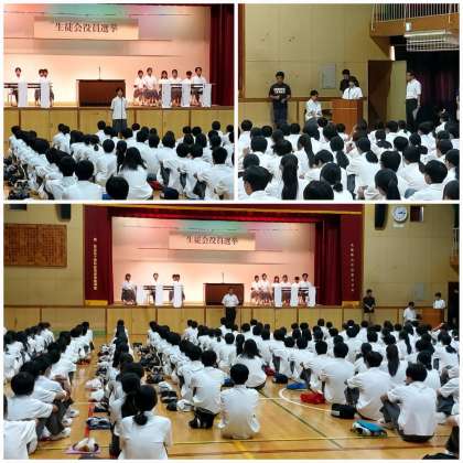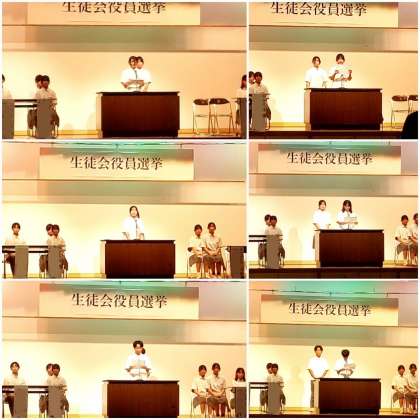 本日6時間目に生徒会長・副会長選挙を行いました。選挙管理委員の司会進行のもと、全校生徒が体育館に集まり立候補者の演説が行われました。