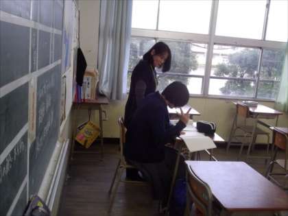 12月3日(木)3年生対象の学習会を開催しました。私立高校の入試まで、あと2ヶ月となり、生徒たちは積極的に学習に取組んでいました。2階多目的室では英語の補習授業を、3年3組の教室では、自習形式でサポーターさんが丁寧に教えてくれました。