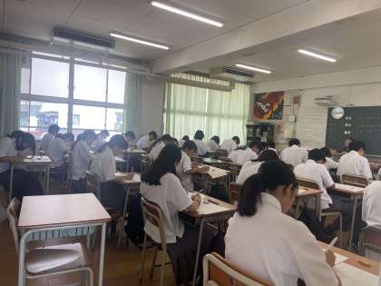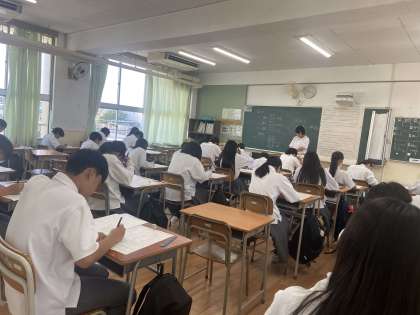 本日9月26日(木)は2学期中間テストを実施しました。中間テスト1日目の本日は、理科、数学、国語のテストでした。いずれの学年も静寂に包まれ、みんな真剣にテストに取り組んでいました。明日は、英語と社会のテストです。