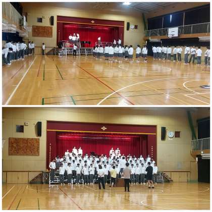 本日6時間目には、初めての全体練習が行われます。教員からは、心を一つにして歌ってほしいと声掛けがありました。