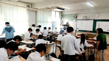 本日10月11日(金)に、学力向上サポーター主催による「マスマス学習会」を開催しました。第2回目となる今回は、「大高・成蹊の過去問を解こう!」と題し、本校からの受験者数が多い大阪高等学校と大阪成蹊女子高等学校の過去問に挑戦しました。黙々と問題に取り組んだり、サポーターさんや友だちに教えてもらったりしながら勉強に励んでいました。