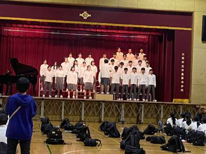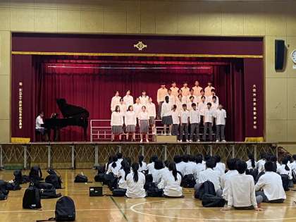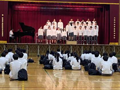 本日6時間目の体育館では、3年生が合唱練習を行っていました。合唱コンクールを一週間後にひかえ、どのクラスもステキな歌声を響かせていました。一週間後には、さらにどんな歌声を聴かせてくれるのか、とても楽しみです。