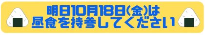明日10月18日(金)は、本校の給食を調理してくださっている井高野小学校の学校行事の都合により給食の提供ができないため、ご家庭にて昼食を準備いただき、ご持参をお願いいたします。
