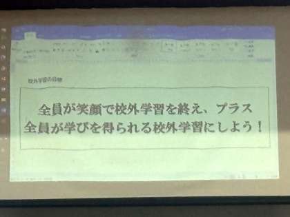 2年生の校外学習の目標は、「全員が笑顔で校外学習を終え、プラス全員が学びを得られる校外学習にしよう!」です。たくさんの笑顔と学び溢れる校外学習になりますように!