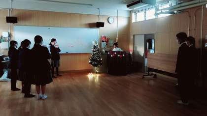 茶道部にお邪魔すると、飾りつけが終わったクリスマスツリーを、ちょうど点灯するところでした。煌びやかなライトがつくと自然と歓声があがりました。