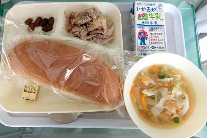 グラッセは、フランス料理で「つやを出す」調理法のことです。本日の給食献立「うずら豆のグラッセ」は、オリーブ油を使ってつやを出していました。