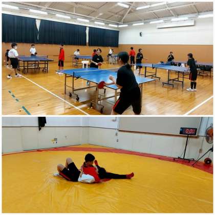 武道場では卓球部、2階多目的室ではレスリング部が活動していました。レスリング部では、全国大会に向け、練習にも力が入っています!今まで積み重ねてきた練習の成果を、存分に発揮してきてくださいね。応援しています!!