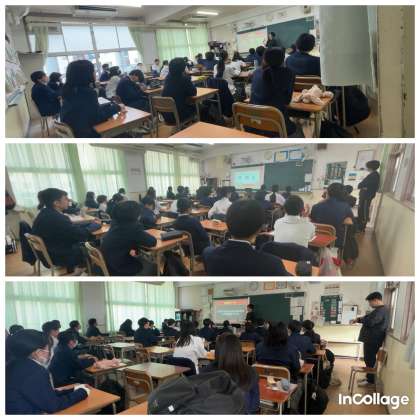 12月9日(月)の4、5、6時間目に1年生の各クラスでの総合授業において、日清食品株式会社監修の「CMの構想をつくる」キャリア学習を実施しました。