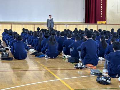 中学校時代は大きく成長するときです。目標を持って挑戦してもらいたいと思います。皆さんは無限の可能性を持っています。それを生かすのは、自分自身です。しっかりとチャレンジしてください。