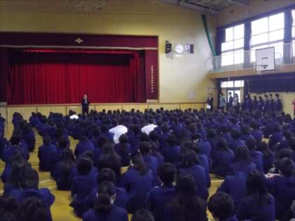 1月7日(木)3学期の始業式を体育館で行いました。昨日より少し寒くなりましたが暖かな新しい年のスタートとなりました。今日1月7日は七種(ななくさ)、春の七種(セリ、ナズナ、ゴギョウ、ハコベラ、ホトケノザ、スズナ、スズシロ)を刻んで入れた七種粥を作って食べると健康に過ごせるといわれています。正月気分を切り替えて新しいスタートを切りましょう。1・2年生は13日(水)にチャレンジテストがあります。3年生は、明日から第5回目の実力テストです。明日は、国・数・英の3教科、連休明けの12日(火)は理・社の2教科です。しっかり頑張ってください。