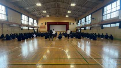 今週は、祝日だったため、本日火曜日に全校集会を行いました。