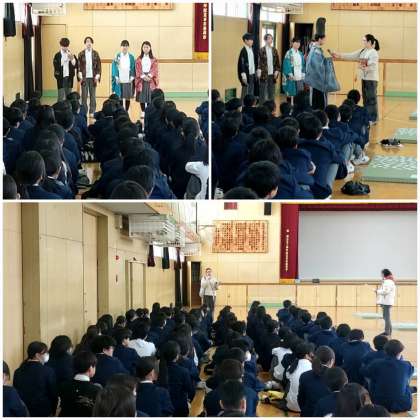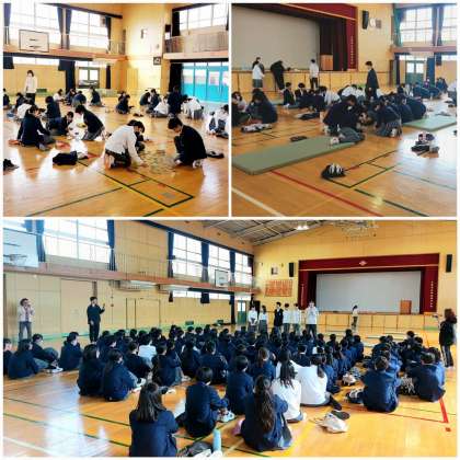 結果としては2組が優勝でしたが、3学期に入ってすぐから、今日の百人一首大会に向け、各クラスで作戦を立て一生懸命和歌を覚えることができました。中学1年生の今のクラスで、行事やイベントをできるのも残り少しですが、みなさんが力を合わせ取り組んでくれたことは、大変素晴らしいことです。来年も百人一首大会があると予想し、引き続き1年かけて沢山の和歌を覚えてください。来年はさらに盛り上がれる学年にしましょう!