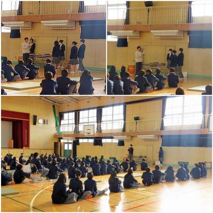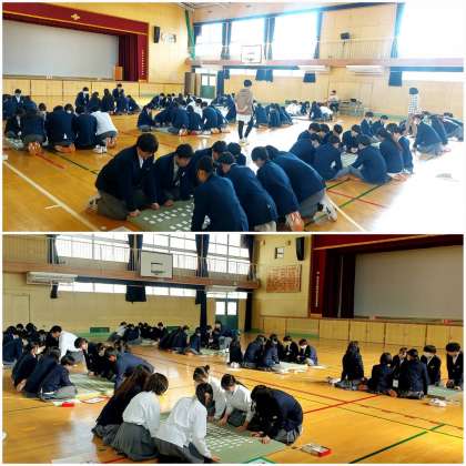 競技を楽しむためには準備やルールを守ることが大切です。それがしっかりできたからこそ、昨年度よりもさらにパワーアップした百人一首大会になりました。これからもマナーやルールを守り、学年や学校を守っていける学年にしていきましょう。