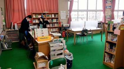 本日の開放には、3年生の図書委員さんが当番にきてくれていました。来館者は少なめでしたが、しっかりと当番の仕事をしてくれていました。