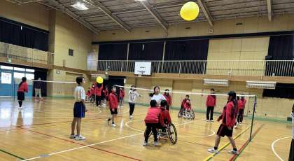 競技用車椅子に座っている人が、どうすれば風船を触ることができるかなどを考えながら、チーム一丸となってパラスポーツを楽しみました。