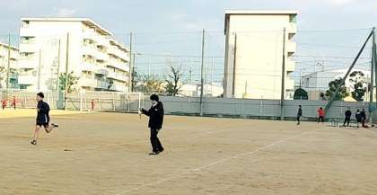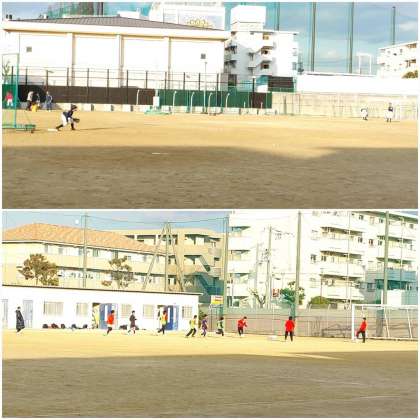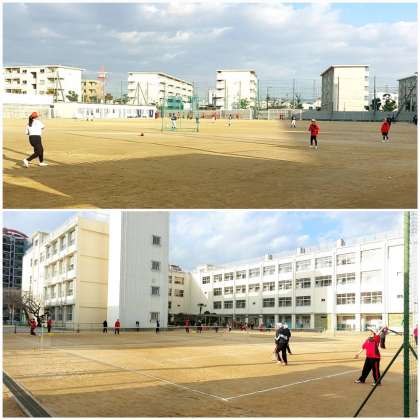 写真は上から順に、女子ソフトボール部、女子ソフトテニス部、野球部、サッカー部、陸上部の活動の様子です。