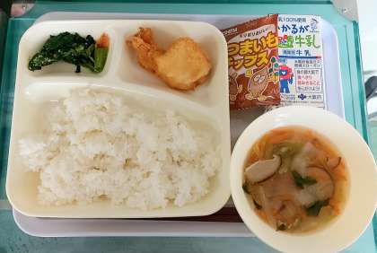 本日1・2年生は学年末テストのため、3年生のみ給食を実施しました。