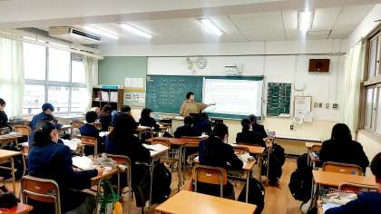本日2時間目に、2年2組の生徒を対象に、英語科の研究授業を行いました。本時の目標は「自分の好みや要望を伝えながら電話で用件を伝えることができる」です。