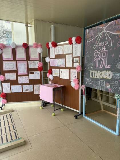 会場となる体育館前には、卒業生のみなさんを祝う温かいメッセージが飾られています。