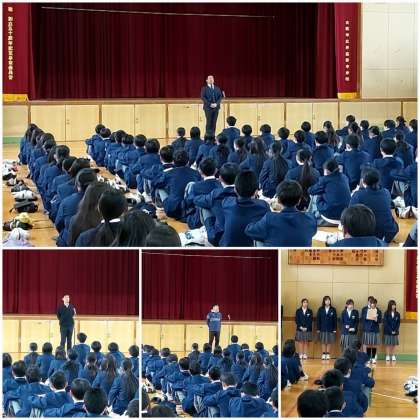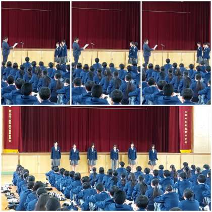 2年生は1年後に、1年生は2年後に卒業とお話がありましたが、1年後、2年後にどんな人になっていたいかイメージしながら生活してください。先日の卒業式では、会場から出てこられる皆さんが、にこにこと笑顔だったことが大変印象的でした。来年、再来年も、そんな卒業式にして欲しいと思います。あれができていない、これができていないと注意することもありますが、みなさんに笑顔で卒業式を迎えて欲しいと思うからこそです。1年先、2年先の自分をイメージし、生活してください。