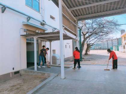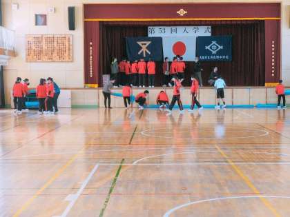 本日午前中に、入学式前準備を行いました。係にあたっていた新2年生、新3年生の生徒が登校し、会場準備と校内の掃除をしてくれました。会場となる体育館は準備が整えられ、新入生を待つばかりです。