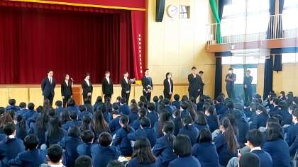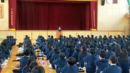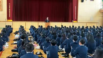 こうして、みなさんの顔を見ることができ、大変嬉しく感じています。春休み中は、勉強や部活動、読書や家事手伝いなどに取り組み、充実した休みになったのではないでしょうか?今年度も、様々なことに興味を持ち、チャレンジしてください。
