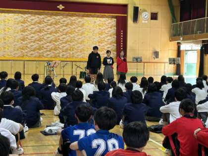 本日5時間目に新入生に向けて、部活動紹介を行いました。部長団代表生徒司会のもと、各部活動の代表生徒が自分たちの部活動をアピールしました。