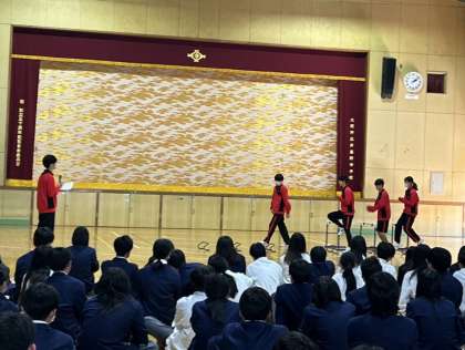 各部活動を代表して紹介を任された生徒は、多くの新入生に興味をもってもらえるようにと、本日の部活動紹介に向け、工夫を凝らした紹介方法を考えてくれました。