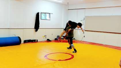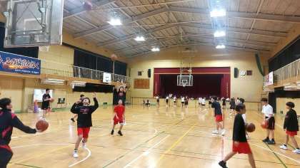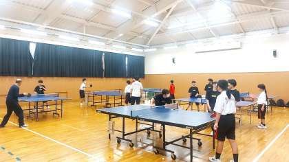 写真は、男女バスケットボール部、卓球部、レスリング部の活動の様子です。