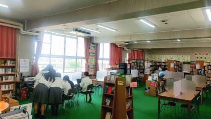 本日の当番には、1年生の図書委員さんがきてくれていました。日頃からよく図書館を利用してくれる生徒や、先生も来館し、活気ある図書館開放になりました。