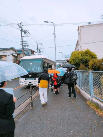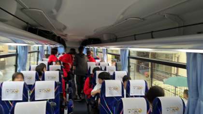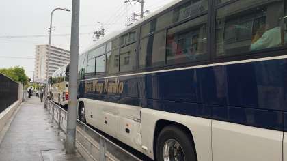 バス乗り場に到着しました。バスに乗り込み、出発です。