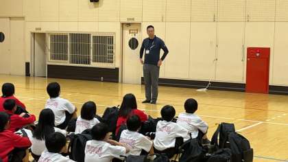宿泊施設の方のお話を聞いています。2日間どうぞよろしくお願いいたします。