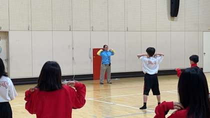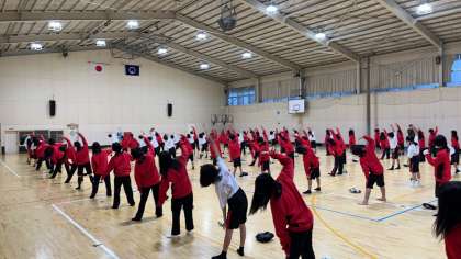 ラジオ体操をしています。