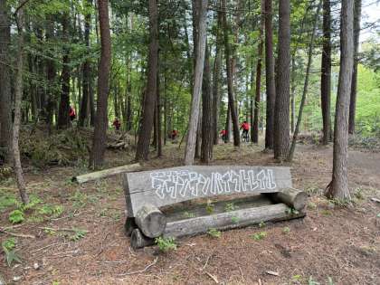 山の中を走り抜けます。特に、下りはスリル満点です!