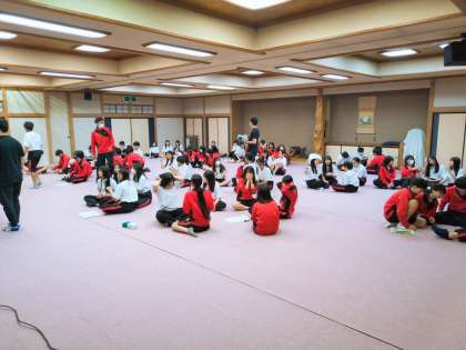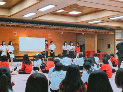 レク係司会担当の挨拶から、レクリエーションがスタートしました!みんな、盛り上がっています!!