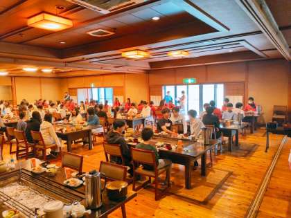 朝食会場に集合完了しました。