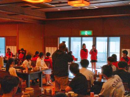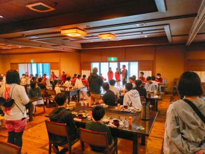 係の「いただきます」。しっかり食べて午前中のラフティング、午後の民泊に臨みましょう!!