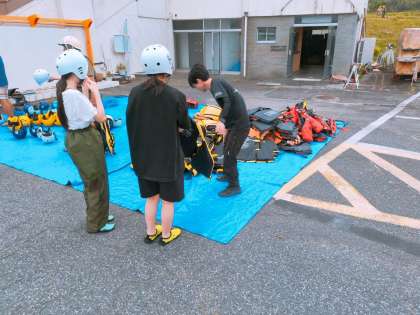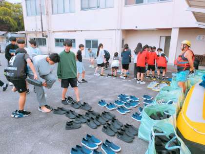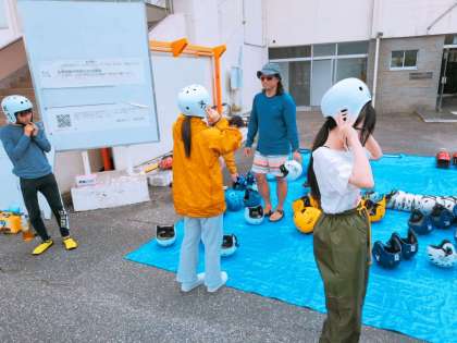 シューズ、ヘルメット、ライフジャケット、パドルを順に受け取ります。