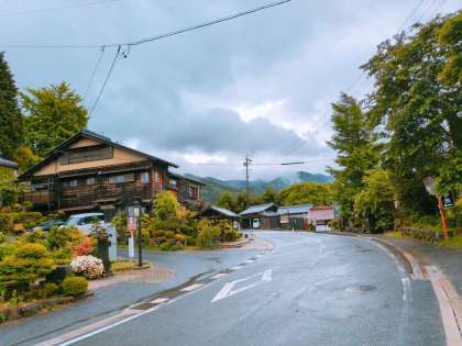 なんと、到着前に雨が上がりました。時々小雨が降りますが、傘をささずに散策可能です。